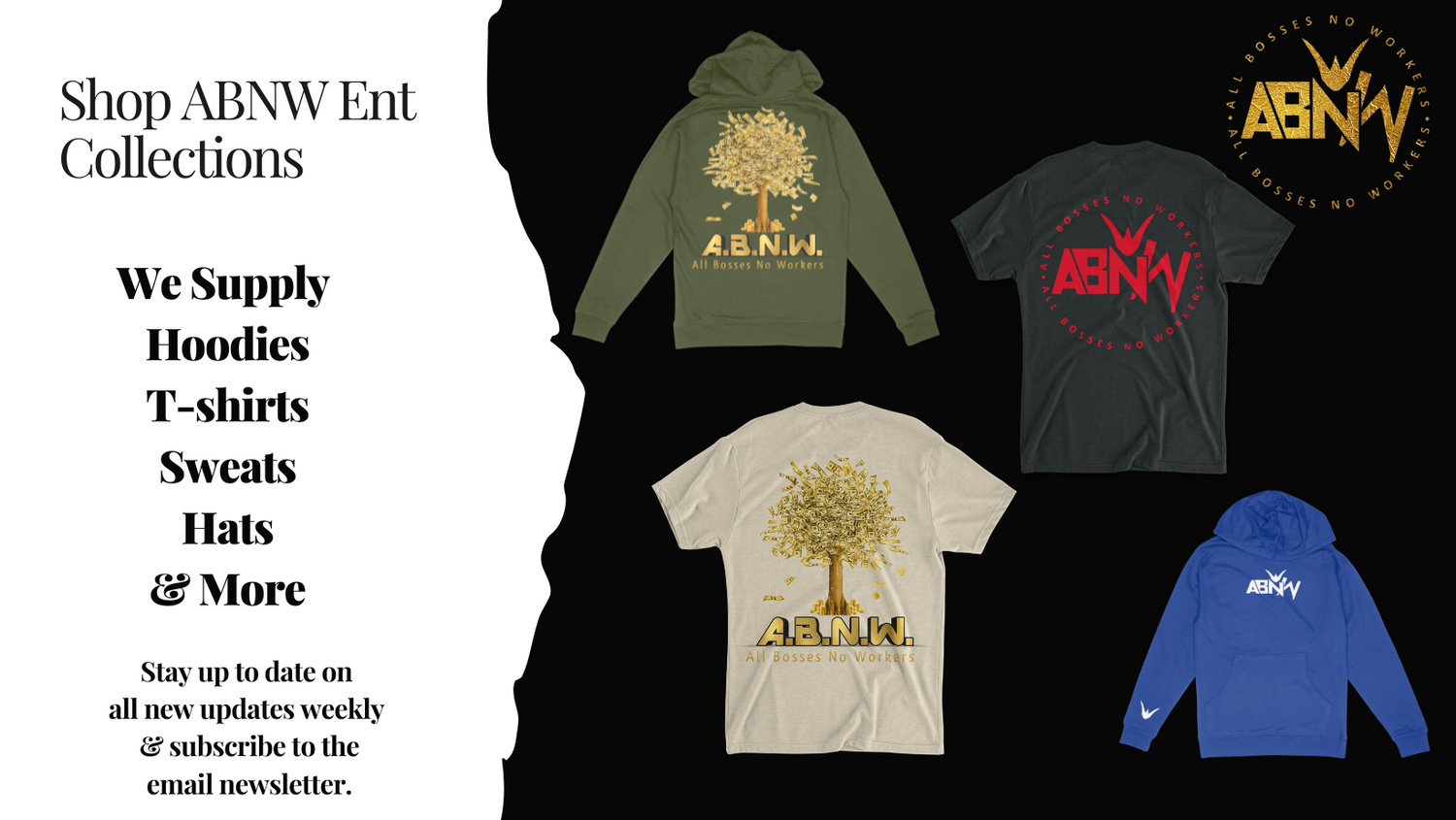 Welcome to All Bosses No Workers Entertainment where our products are built with quality materials and the latest technologies to meet the highest industry standards. We use our business to mentor our community who depend on the streets for their survival. It’s our responsibility to nurture music, and to foster artistry and self-expression to find more common ground through music.